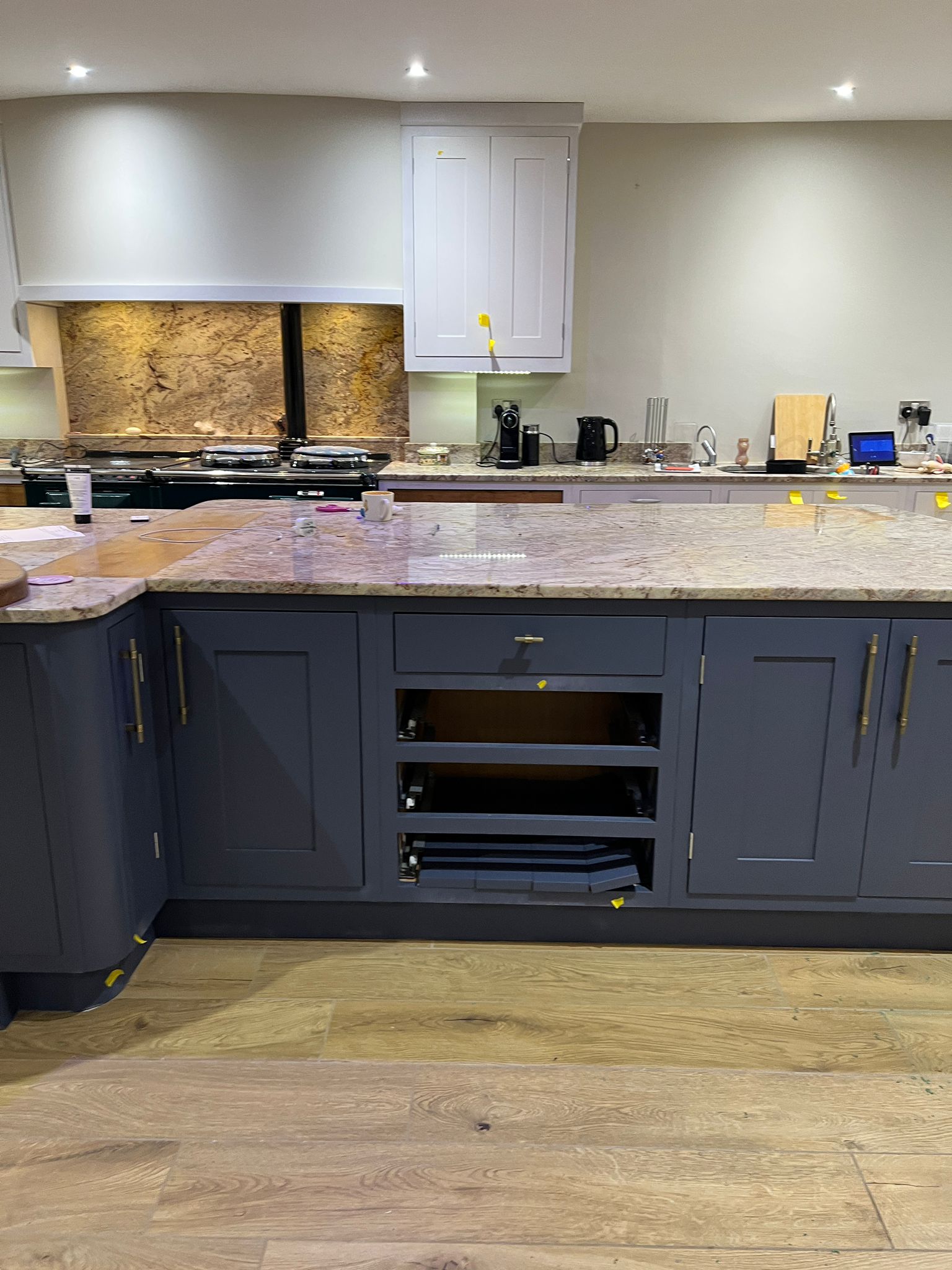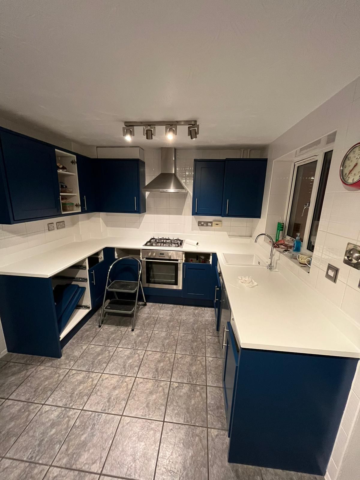 Everything is fully protected before we spray. All doors, drawers and removable parts are taken away and sprayed in our workshop. Anything sprayed inside your home is completely masked up, including units, walls, floors and appliances. This ensures there’s no overspray, dust or mess left behind.